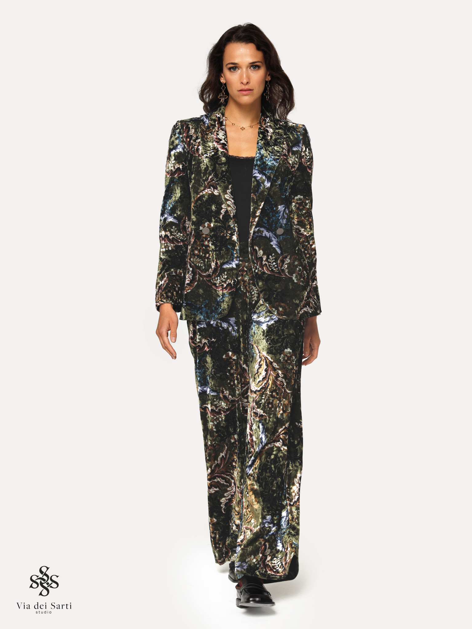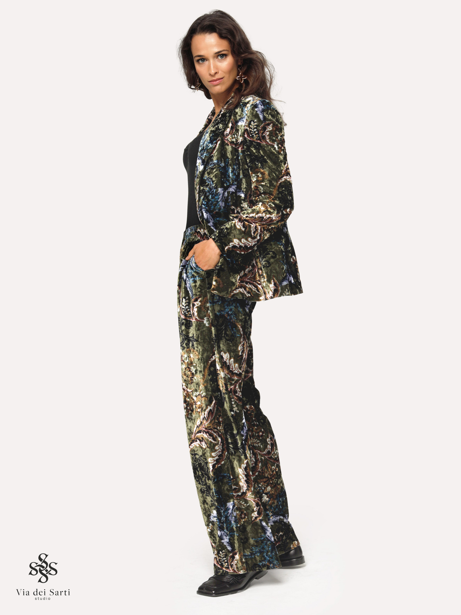 Wszystkie produkty z kolekcji Via dei Sarti Studio szyjemy w krótkich seriach, w naszej wysoko wykwalifikowanej pracowni — od początku do końca przez jedną krawcową.