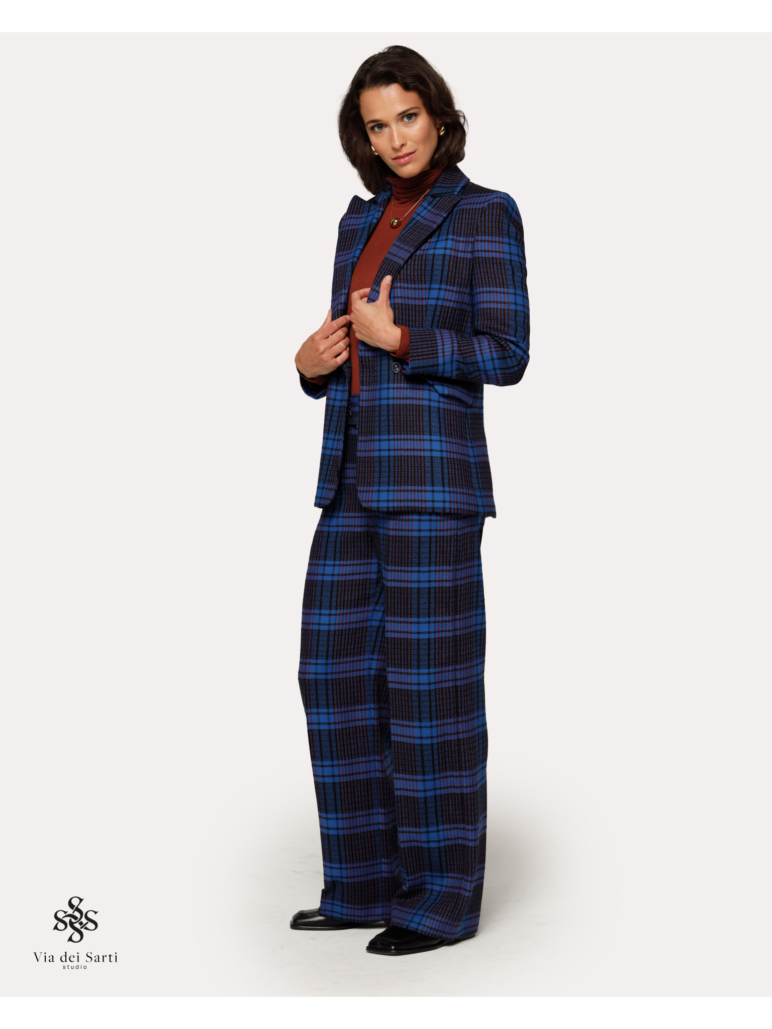 Barcelona to miasto kolorów i radości życia. Taki właśnie jest ten garnitur — widoczny z daleka, podkreślający optymizm i artystyczną duszę jego właścicielki. Wykonany z włoskiej wełny o lekko plecionej strukturze, charakteryzuje się wysoką odpornością na gniecenie.