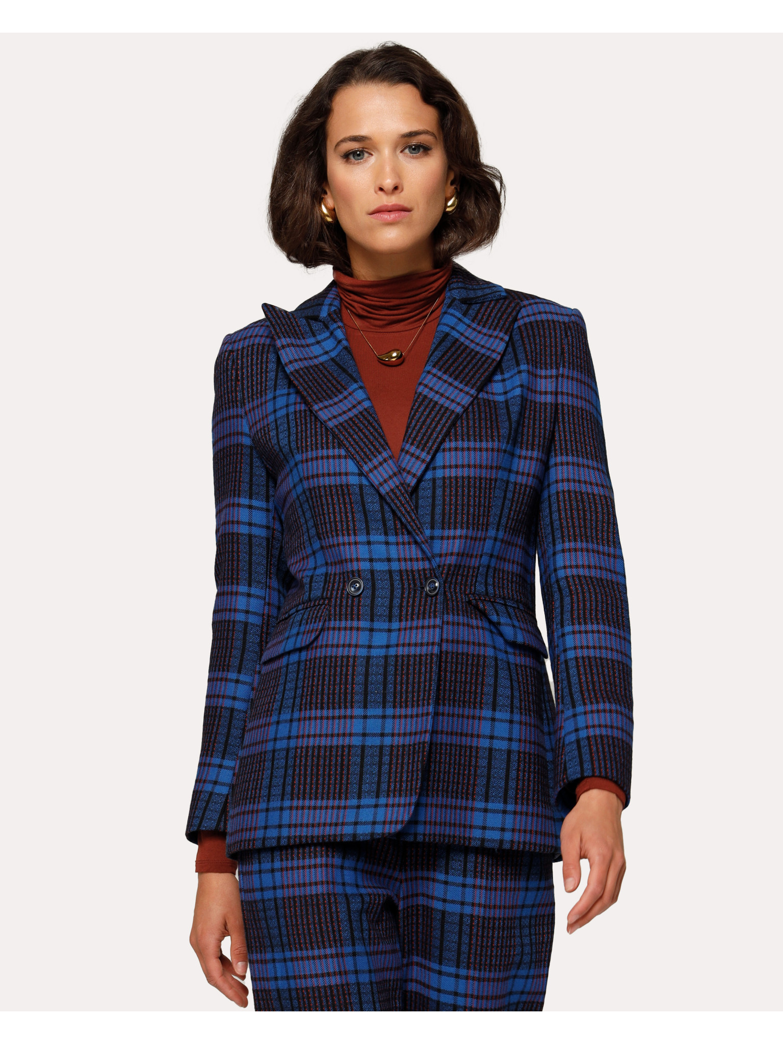 Wyrazista, artystyczna marynarka z w\u0142oskiej we\u0142ny o lekko plecionej strukturze. Tkanina jest odporna na gniecenie i ma charakterystyczny, energetyczny wz\u00f3r.<\/p>\n